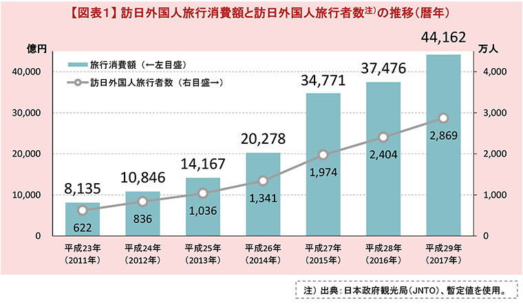 2017年の訪日外国人旅行者は2,869万人で、10年前の3倍強。