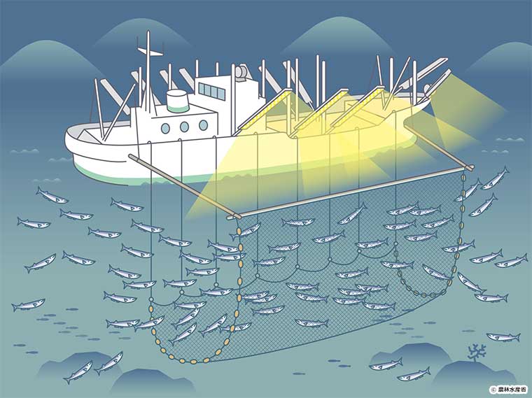 大型漁船は遠方の漁場で大量に魚を漁獲することができます。その意味で「流し網漁」に始まり、徐々に大型の棒受け網船へと解禁していく仕組みは、漁法や漁船の大小に配慮した仕組みといえます。