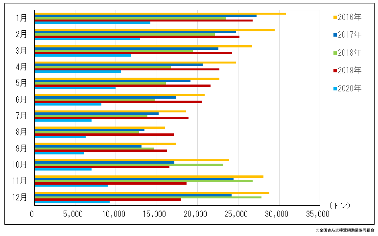 (冷凍サンマ 月末在庫量の推移 全国さんま棒受網漁業協同組合)