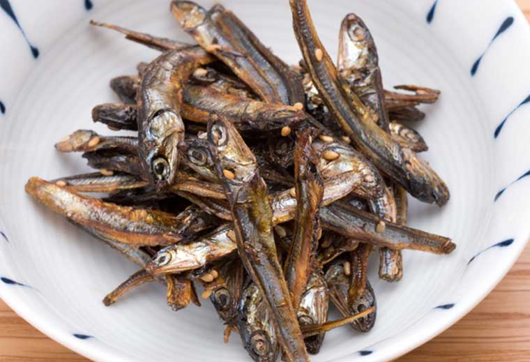 関東の三つ肴に数えられている田作りは、山陰地方では「からんま」、関西では「ごまめ」と呼ばれ、炒ったカタクチイワシを酒・ミリン・サトウ・醤油などで煮詰めた甘露煮です。