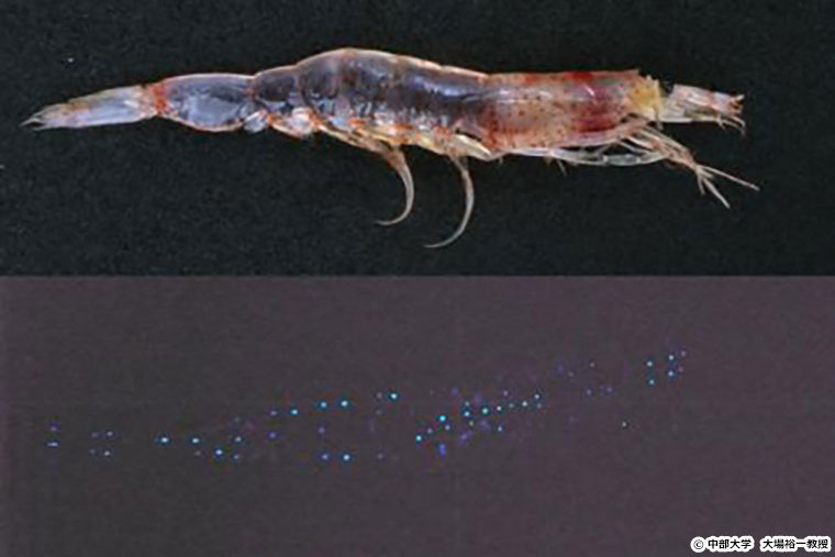 (サクラエビが光る様子 提供:中部大学 大場裕一教授)