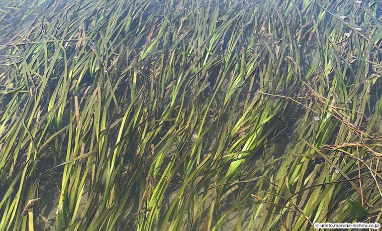 アマモが生い茂るアマモ場は、多くの生き物の棲みかとしてだけではなく、海水の浄化と酸素の供給に大きな役割を果たしています。