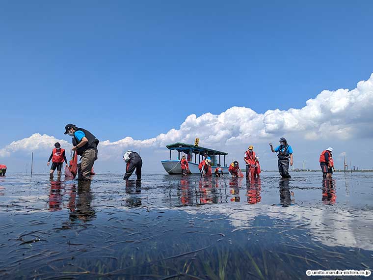 (Umios(旧マルハニチロ)のアマモ場再生活動イベントの様子)