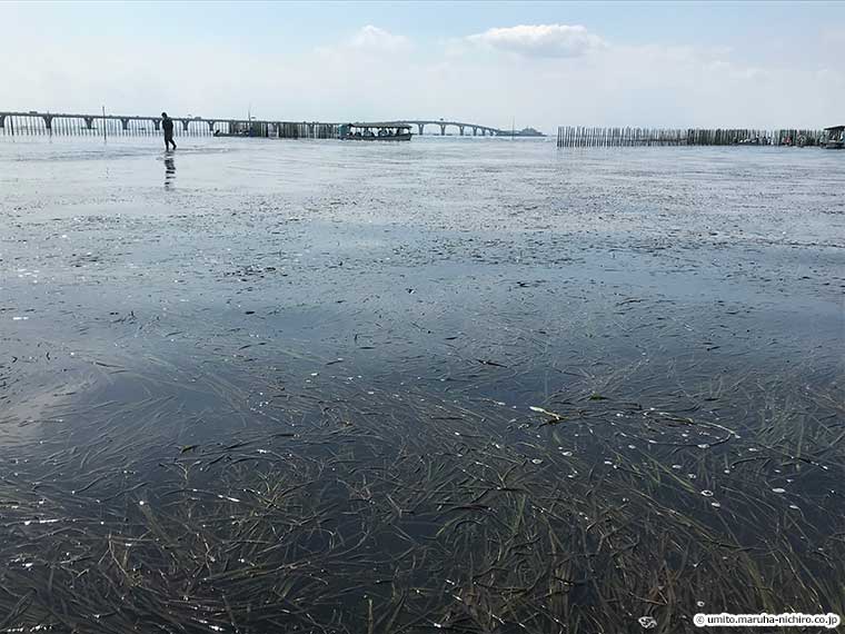 アマモは波の穏やかな内海や内湾の砂泥域で繁茂します。