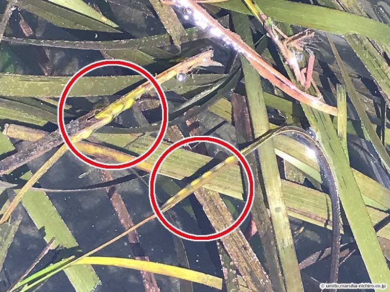 アマモの葉は海獣類のジュゴンやアイゴやブダイなどの草食魚のえさにもなりますが、それだけではありません。