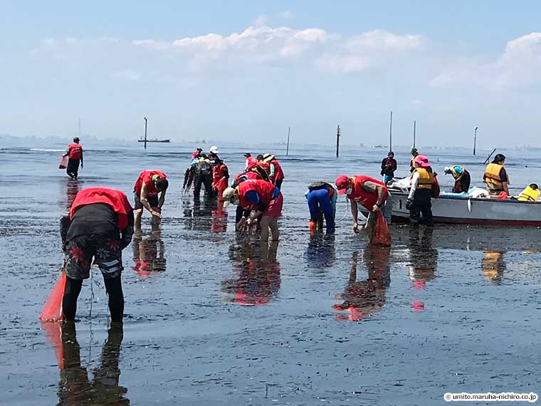 2022年6月4日、千葉県木更津市の盤州干潟(ばんずひがた)でアマモの種を採取しました。