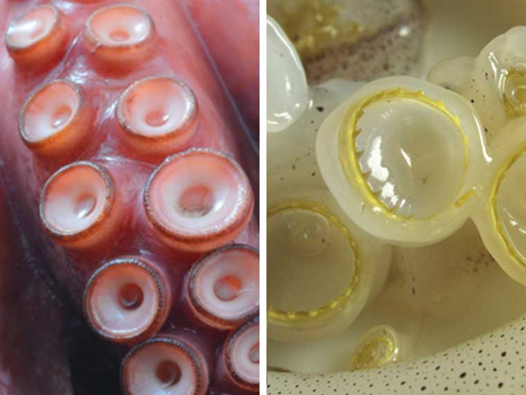 (左:タコの吸盤 右:イカの吸盤)