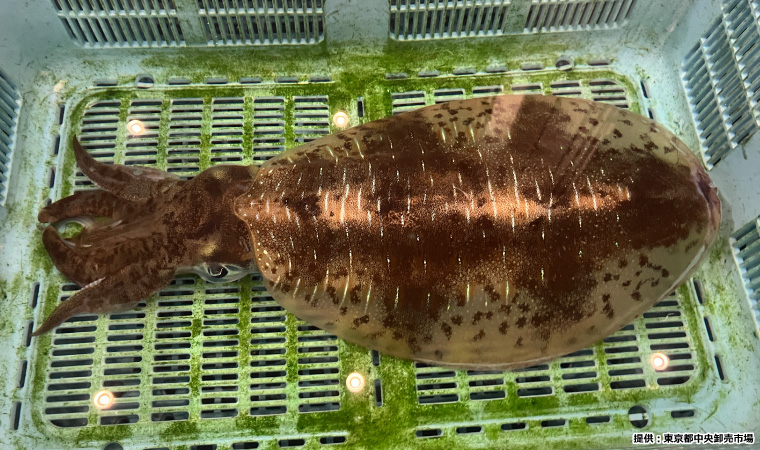 こちらはイカの王様アオリイカ。旨み、食感ともに最高と言われることが多いのが、“王様”の謂れ。生きているときは体が透き通っていますが、死んでしまうと真っ白になります。