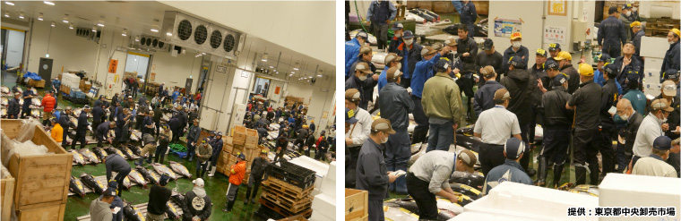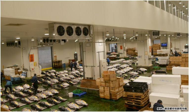(水産卸売場 マグロのせり開始前)