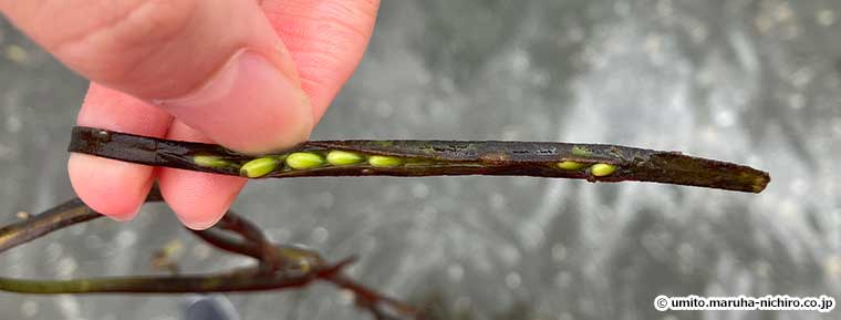 アマモのタネは花枝の中に入っているため、花枝ごと採取します。