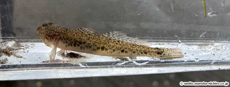 ハゼの仲間のヒメハゼです。ハゼはスズキの仲間で体の断面が丸いのが特徴的な魚です。