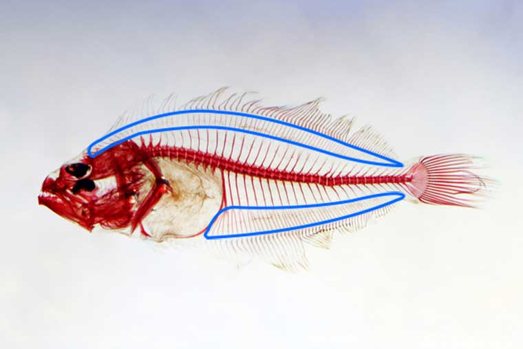 (ヒラメの担鰭骨 青線で囲んだ部位)