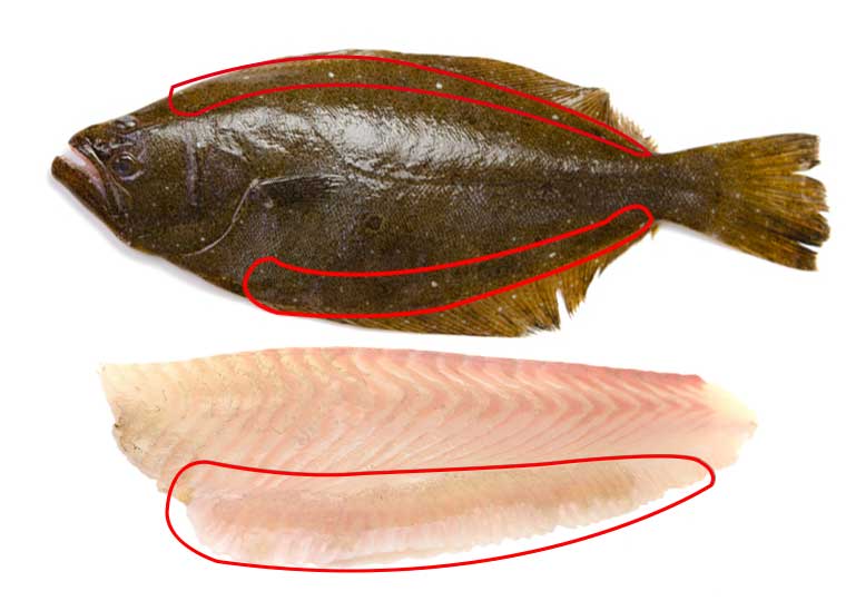 (上:ヒラメ 下:ヒラメの柵)