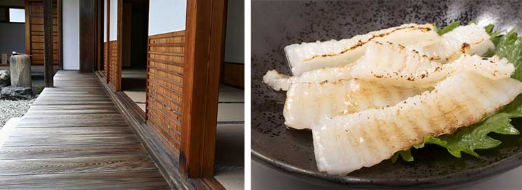 (左:日本家屋の縁側 右:アブラガレイのえんがわ)