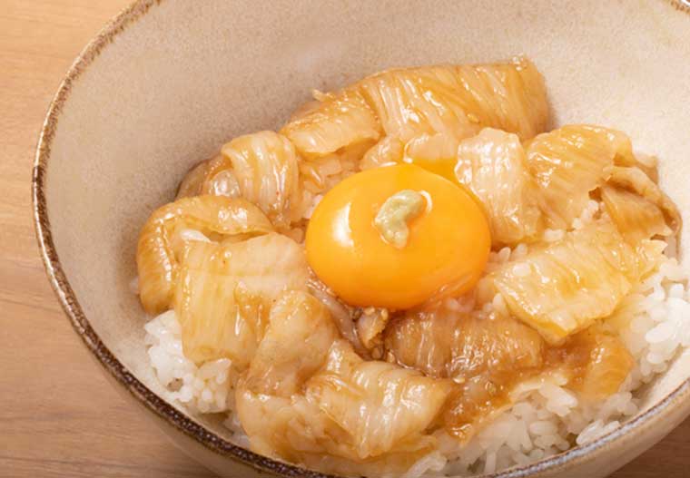 めんつゆベースのタレにえんがわを漬け込み、卵黄をのせた丼ぶりもおすすめです。