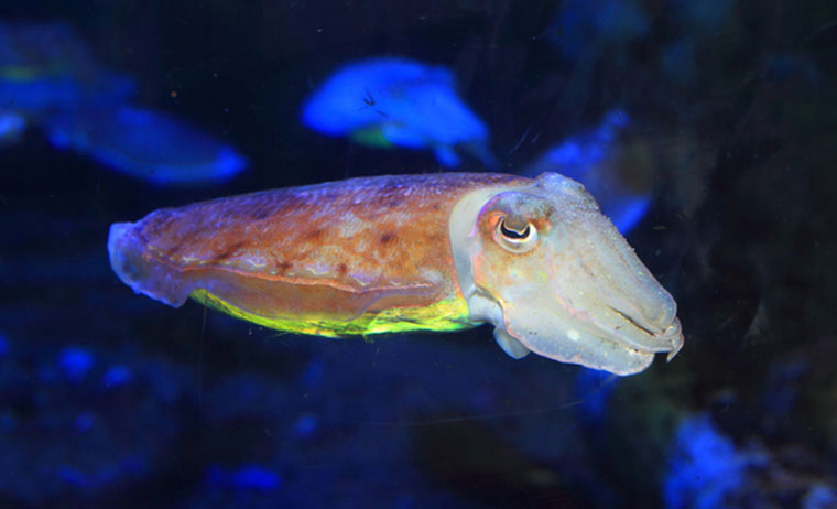 コウイカ:固い石灰質の甲をもつのでこの名前がつきました。肉は厚くて美味。お寿司の高級ネタ「新イカ」とは、コウイカの稚イカのことで、甘みがじんわりと広がる初夏限定の極上の一貫です。ちなみにこの甲の部分、カルシウムがとても豊富で、インコなど小鳥の副食として、またくちばしを研ぐために昔から使われています。