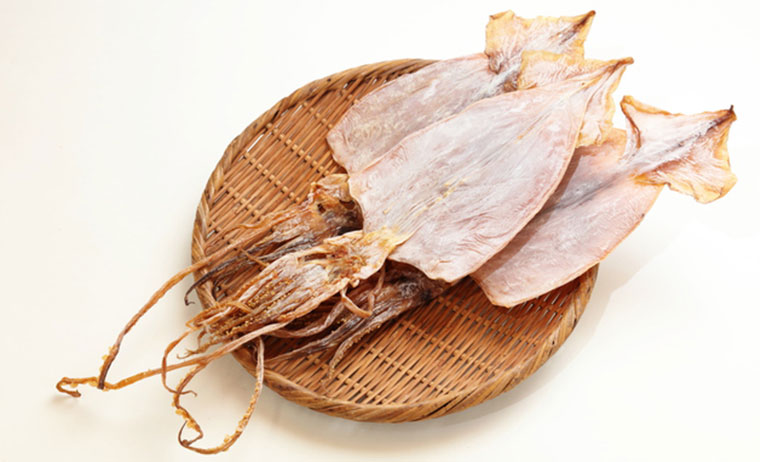 大相撲の土俵中央に、神さまへの供物を「鎮物(しずめもの)」として5つの品が奉納されることをご存知でしょうか。その品とは洗米、塩、昆布、勝栗、そして鯣(スルメ)なのです。また、ご縁が続きますようになどの意味で「寿留女」と表記して結納品に用いられるなど、お祝い事には欠かせない縁起物として、古くから重宝されてきました。
