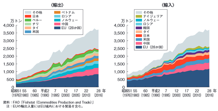 (水産白書 世界の水産物輸出入量の推移)