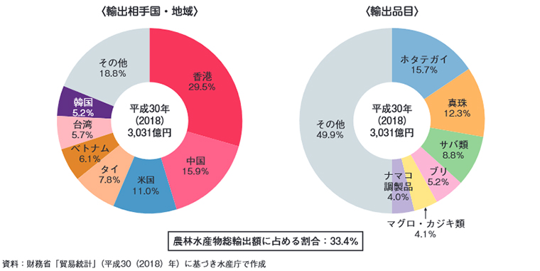 (水産白書 我が国の水産物輸出相手国・地域及び品目内訳)
