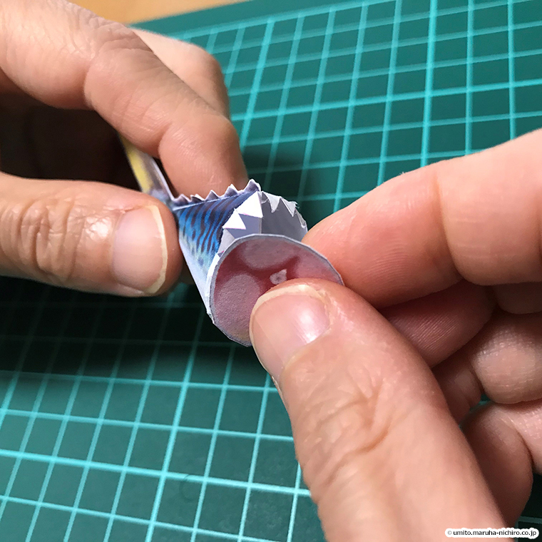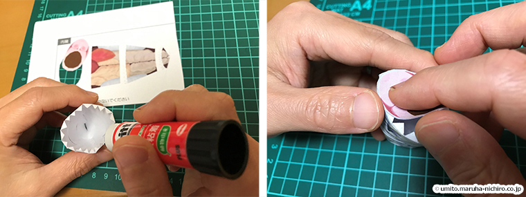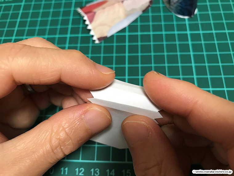 「16」は裏側に折り目を付けたら、印刷面が内側になるように筒状に貼り合わせます。