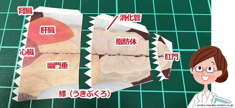 幽門垂…硬骨魚類に特有の消化器官。胃と腸の境界部分にあります。内部の表面積を増やすことによって、消化・吸収率を高めていると考えられています。