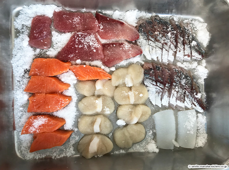(刺身に砂糖をまぶしたところ)