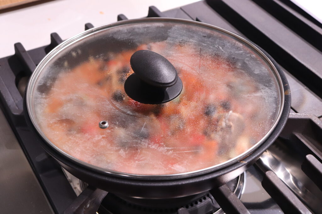 蓋をして中火~弱火で10分煮込む。
