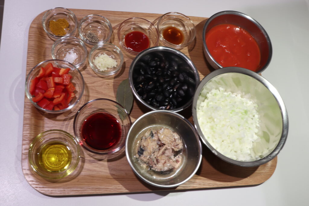 サバと黒豆のチリビーンズ風