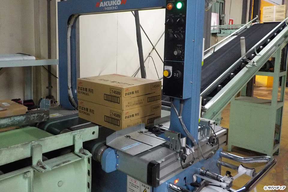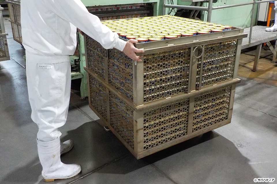 箱詰めされた缶詰は保管庫に送られ出荷を待ちます。