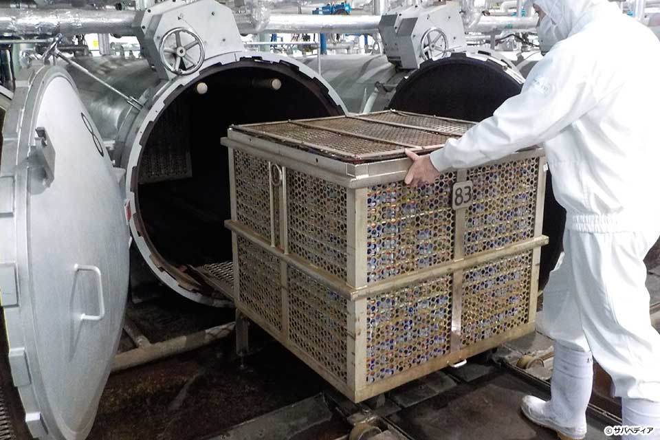 その後、別に保管しておいた缶詰を一部開けて、決められたとおり殺菌されているかどうかを念のためチェックしています。